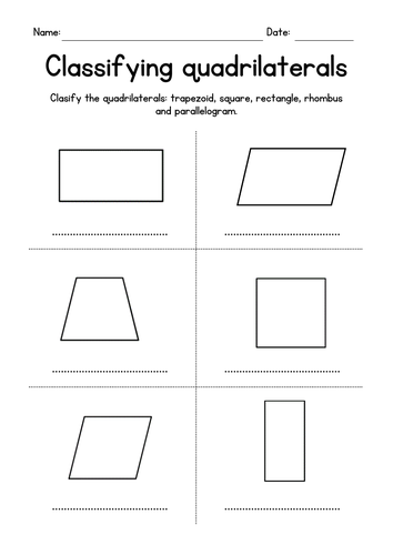 Geometry Worksheets - Math-Drills Worksheets for classifying quadrilaterals. Classifying quadrilaterals Quadrilaterals are interesting shapes to classify. Their classification relies on a few attributes and most quadrilaterals can be classified as more than one shape. A square, for example, is also a parallelogram, rhombus, rectangle and kite.